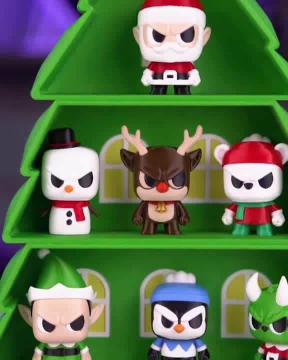 Inclui todos os bonecos da coleção — Elfo, Diabinho, Pinguim, Urso, Rena, Boneco de Neve — e um elegante Expositor para organizar e valorizar cada detalhe da tua decoração.