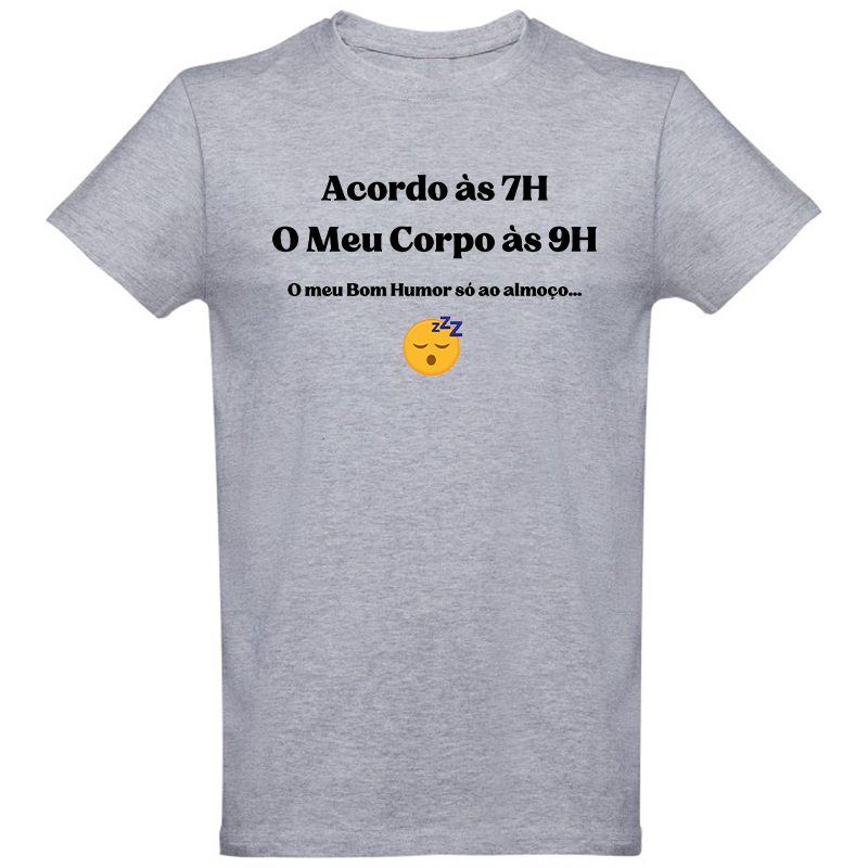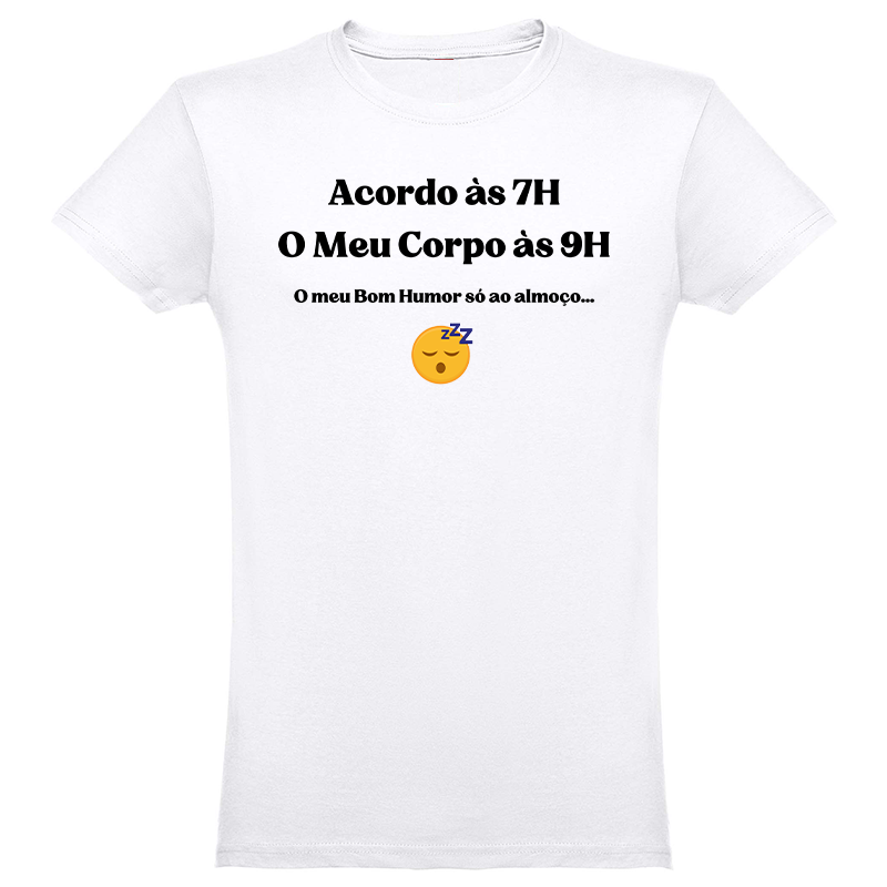 Veste a tua honestidade matinal com o humor de quem sabe que a vida começa cedo, mas a alma demora um bocadinho mais a chegar. Ideal para manhãs de trabalho, idas ao ginásio ou para sobreviver àquele colega que acorda com energia a mais.