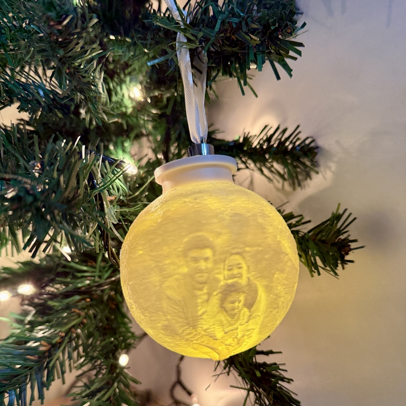 Torna a tua árvore ainda mais especial com a encantadora Bola de Natal personalizada com fotografia, texto e iluminação LED! Uma peça única, perfeita para celebrar momentos, homenagear alguém especial ou simplesmente dar um brilho mágico à tua decoração natalícia. ✨📸