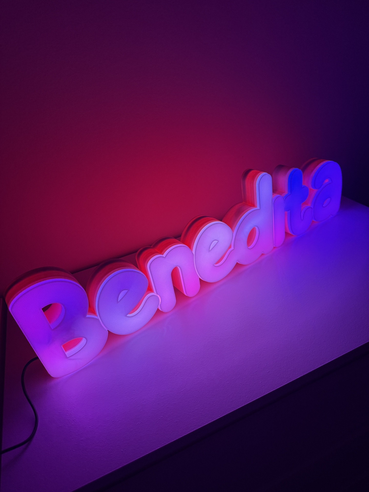 Ideal para crianças, jovens e adultos que adoram decorações personalizadas, esta peça combina design moderno, personalização única e iluminação vibrante, tornando-se o destaque em qualquer espaço.