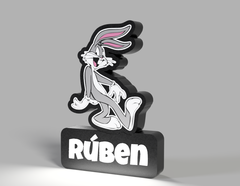 Perfeita para fãs de desenhos animados, cultura pop e decoração divertida, esta luminária combina iluminação RGB personalizável, nome gravado à tua escolha e o icónico personagem Bugs Bunny, trazendo charme e humor a qualquer quarto, estúdio ou home office. 🌈🎛️