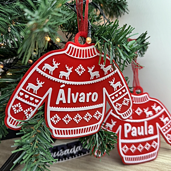 Entra no espírito natalício com o ornamento em forma de camisola de Natal personalizada com nome! ❤️🎅