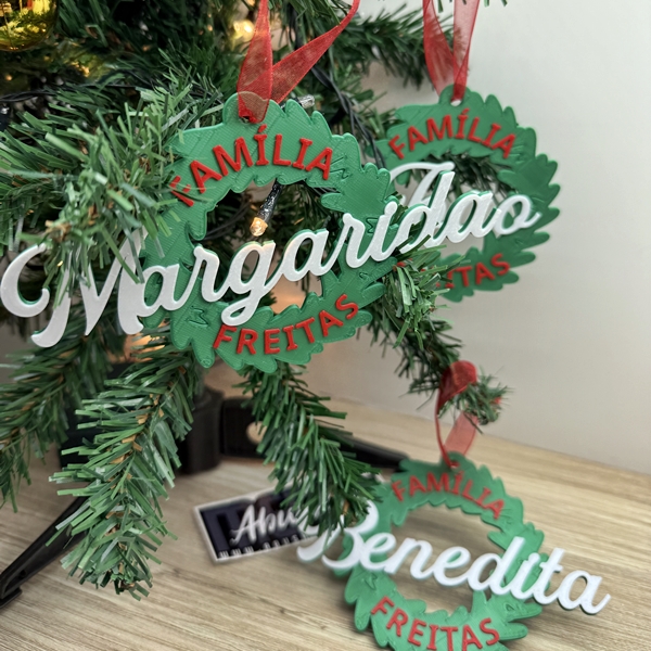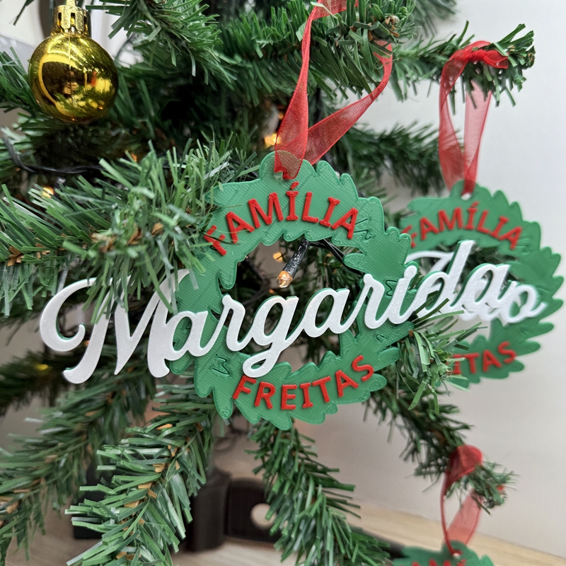 💡Características principais: 🌲 Design em formato de coroa de Natal – elegante e festivo 🔤 Personalização com nome da família ou membros 🎁 Ideal como presente familiar ou decoração duradoura 🏠 Perfeito para árvores de Natal, guirlandas ou centros de mesa 🇵🇹 Produção artesanal e personalizada em Portugal ✋ Acabamento resistente e de alta qualidade